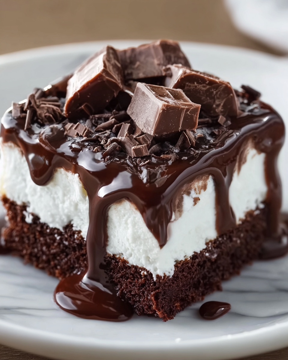 While the cake is still warm, scatter the mini marshmallows evenly over the top. Return it to the oven for an extra 2-3 minutes, just until the marshmallows soften and become delightfully gooey. This step creates the signature marshmallow “mud” layer that makes this cake so irresistible.