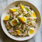 This classic tuna salad is a quick and easy recipe perfect for a nutritious lunch or light dinner. Combining protein-rich tuna with creamy mayonnaise, diced hard-boiled eggs, and flavorful additions like Dijon mustard, pickles, and fresh herbs, this salad offers a delicious balance of textures and tastes. Serve it chilled on toast, as a sandwich filling, or over a bed of greens for a versatile meal.