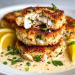 These Pan Fried Cod Crab Cakes combine flaky cod and tender crab meat with a blend of seasonings, Dijon mustard, and fresh lemon juice, then coated with breadcrumbs and pan-fried to a golden crisp. Perfect for a quick and flavorful seafood appetizer or main dish, they offer a satisfying crunch and tender interior with simple ingredients and minimal prep time.