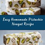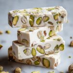This Pistachio Nougat recipe offers a delightful homemade soft nougat candy studded with roasted pistachios. It combines the sweetness of syrup and egg whites whipped to a glossy, thick texture, enhanced with vanilla and butter for richness. Perfect as a Mediterranean-inspired dessert that’s gluten-free and easily customizable with other nuts.