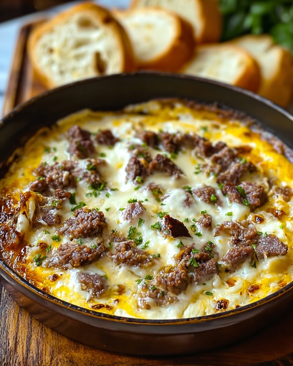 To elevate your Pot Roast Beef Philly Cheese Steak Dip Recipe even further, sprinkle some fresh chopped parsley or chives on top. A light dusting of smoked paprika or red pepper flakes adds a subtle, smoky, or spicy touch that complements the richness beautifully. These little extras not only brighten the look but give you more layers of flavor with each scoop.
