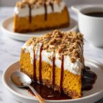 This Pumpkin Caramel Poke Cake is a moist, spiced dessert perfect for fall gatherings. Featuring a pumpkin-infused batter with warming spices, it’s baked to perfection and then poked to allow rich caramel sauce to seep in. Topped with a light whipped topping and optional crunchy garnishes, this cake balances sweet, creamy, and nutty textures in every bite.