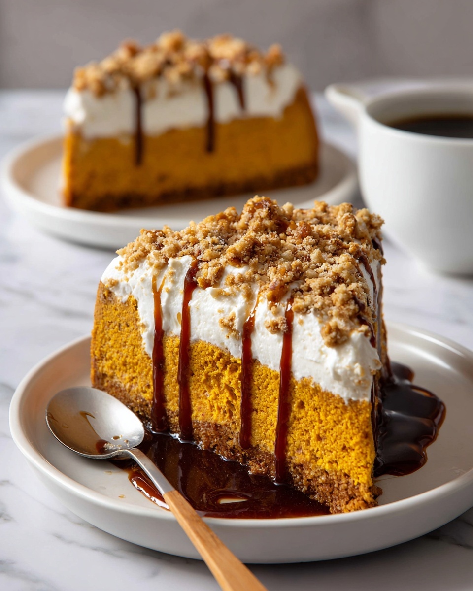 This Pumpkin Caramel Poke Cake Recipe pairs wonderfully with a hot cup of spiced chai, fresh brewed coffee, or even a smooth vanilla ice cream scoop. These sides complement the cake’s warmth and sweetness, rounding out a perfect dessert experience that feels decadent yet balanced.