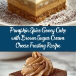 This Pumpkin Spice Gooey Cake with Brown Sugar Cream Cheese Frosting is a delightful autumn treat combining a moist pumpkin-infused yellow cake base with a rich, spiced cream cheese filling. Topped with a luscious brown sugar cream cheese frosting, this cake offers a perfect balance of gooey texture and warm fall flavors, ideal for holiday gatherings or cozy dessert moments.