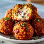 Reuben Fritters are crispy, golden-brown bites packed with classic Reuben sandwich flavors—corned beef, Swiss cheese, sauerkraut, and tangy Dijon mustard. These bite-sized fritters are coated in a crunchy breadcrumb crust and fried to perfection, making a perfect appetizer or snack served with Thousand Island dressing or spicy mustard for dipping.