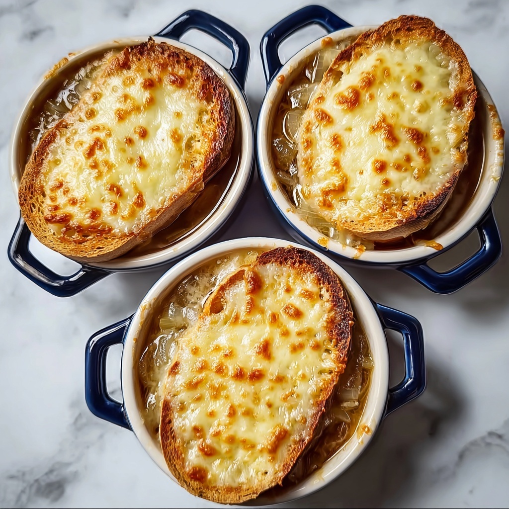 Presenting your soup in rustic, individual crock bowls adds to the cozy vibe. You can also serve the cheesy toasts on a separate plate for dipping, letting guests scoop their own cheesy goodness. For parties, serve mini portions in small ramekins for a charming appetizer that promises big flavor.
