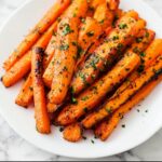 This Roasted Parsley Carrots recipe features tender, caramelized carrots roasted to perfection with ghee or butter and seasoned simply with salt and dried parsley. It makes a flavorful and healthy side dish that’s easy to prepare and highlights the natural sweetness of carrots.