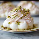 Sprinkle chopped pistachios over the cooled meringues just before serving for an extra layer of texture and a gorgeous contrast of green against the soft pink. You can also add a few edible rose petals or a dusting of powdered sugar to elevate their elegance further.