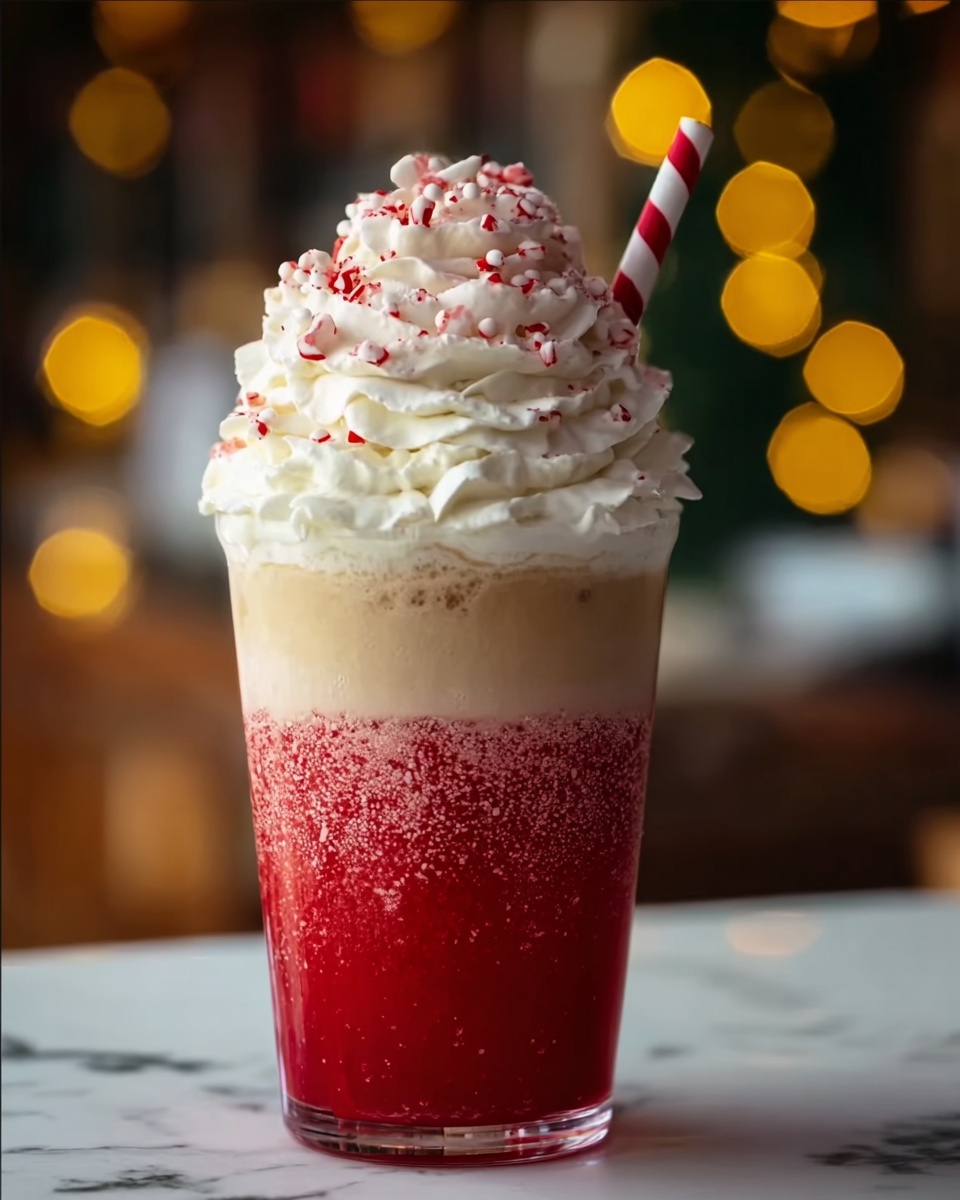 This festive Santa Claus Frappuccino is a delightful blend of peppermint, chocolate, and coffee flavors, perfect for holiday celebrations or as a refreshing treat. Creamy peppermint ice cream combined with cooled brewed coffee and a touch of chocolate syrup creates a rich, frosty beverage that’s topped with whipped cream and crushed candy canes for a festive finish.