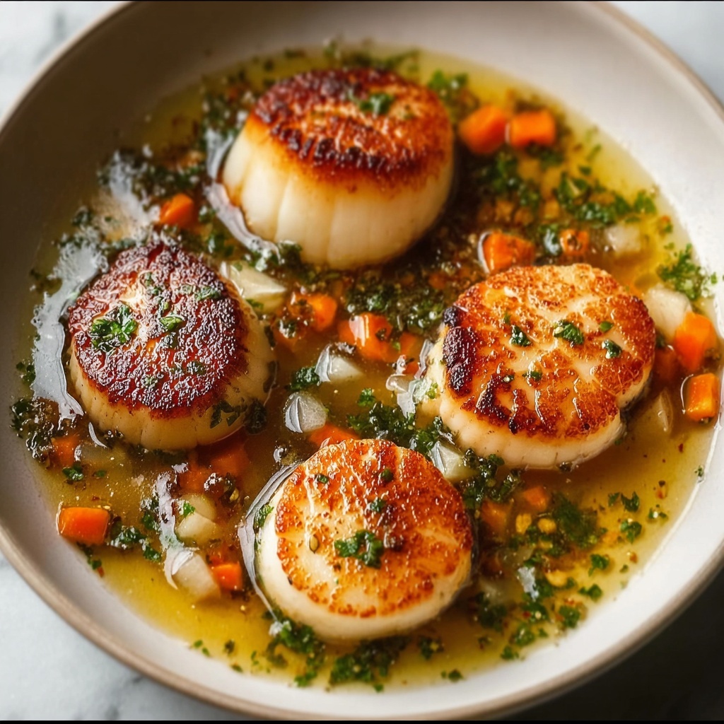 A classic French-inspired Scallops Meunière recipe featuring tender sea scallops dredged in flour and pan-fried in butter and olive oil, then finished with a vibrant lemon, butter, parsley, and caper sauce. This quick and elegant dish is perfect for a sophisticated yet easy weeknight dinner, delivering rich flavors with a bright citrus finish.