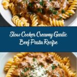 This Slow Cooker Creamy Garlic Beef Pasta is a comforting and hearty one-pot meal perfect for busy days. Tender beef stew meat simmers slowly with garlic, beef broth, and Italian seasonings, then combines with creamy Parmesan sauce and perfectly cooked pasta for an easy, flavorful dinner that the whole family will love.