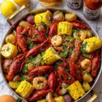 A flavorful stovetop crawfish boil featuring tender crawfish, andouille sausage, baby potatoes, and corn, all simmered in a zesty Louisiana-style seasoning broth. Finished with a decadent homemade garlic butter sauce infused with lemon and Cajun spices, this dish is perfect for gatherings and sharing.