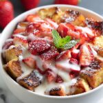 This Strawberries & Cream French Toast Casserole is a decadent and comforting breakfast dish featuring layers of challah or brioche bread, fresh strawberries, and creamy cream cheese custard. Topped with a buttery cinnamon streusel, it’s perfect for a leisurely weekend brunch or special occasion, offering a delightful combination of sweet and creamy flavors with a golden, crispy topping.