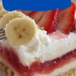 Strawberry Banana Cream Delight is a no-bake, layered dessert featuring a graham cracker crust topped with a smooth cream cheese and whipped cream filling, fresh banana and strawberry slices, and a shiny strawberry preserve glaze. This chilled treat is perfect for warm days and makes a refreshing, fruit-forward finale for any meal.