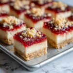 Layer the filling over the crust, making sure each cheesecake bite is well-filled. Sprinkle a strawberry crunch topping or extra graham cracker crumbs on top for that irresistible crispy texture that elevates this dessert.