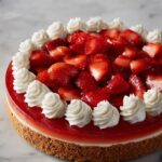 - Add the Topping: Before serving, arrange the fresh sliced strawberries on top of the pie. Optionally, add a dollop of whipped cream for an extra creamy touch.
