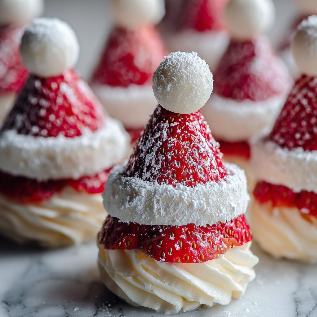 For parties or family gatherings, arrange Strawberry Santas on a decorative platter in the shape of a Christmas tree or wreath. You can also thread them onto skewers alternating with marshmallows and green grapes to create festive kabobs. Another fun idea is placing each Santa inside a clear cupcake liner and topping them with a tiny candy cane for an adorable gift-ready treat.