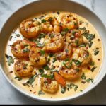To reheat, warm the shrimp gently in a skillet over low heat rather than in the microwave to avoid overcooking. Add a splash of chicken broth or cream to loosen the sauce if it’s thickened too much. Heat until just warmed through for the best texture and flavor.