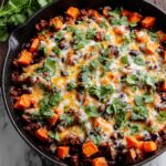 This Sweet Potato Chili Casserole is a hearty and flavorful dish combining ground beef or turkey with sweet potatoes, black beans, corn, and a blend of spices. Baked to perfection and topped with melted cheese, it makes for a comforting and wholesome meal perfect for family dinners.