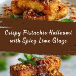 Swicy Pistachio Halloumi with Lime Glaze offers a delightful combination of crispy, nutty coating and a bold, sweet-spicy tangy glaze. Perfect as a snack or appetizer, this recipe features halloumi sticks coated in pistachios, panko, and sesame seeds, shallow fried to golden perfection, then drizzled with a zesty lime-infused honey glaze.
