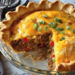 If you are craving a crowd-pleasing dish that bursts with bold flavors and layers of deliciousness, you will absolutely adore this Taco Pie Recipe. It’s a simple yet incredibly satisfying meal that combines seasoned ground beef, creamy refried beans, melted cheddar cheese, and a medley of vibrant toppings all baked inside a warm, soft flour tortilla. Whether you want an easy weeknight dinner or a fun dish to share with friends, this taco pie brings together all the best elements of a taco in one cozy, sliceable pie that’s sure to become a family favorite.