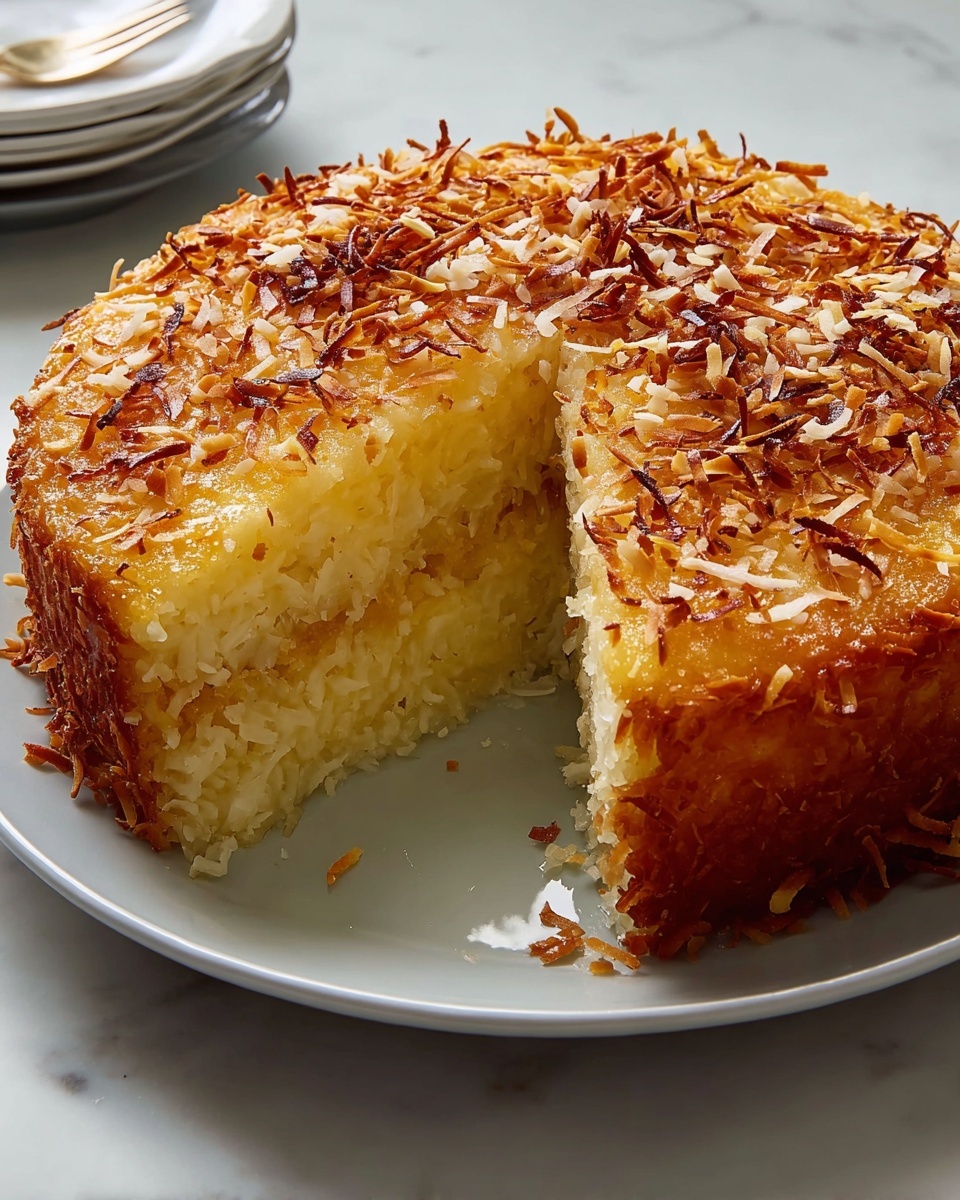 - Fold in Coconut: Stir in the shredded sweetened coconut, evenly incorporating it into the custard mixture for texture and flavor.