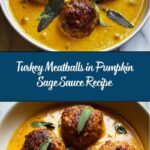 Delicious and comforting turkey meatballs baked to perfection and served in a creamy, flavorful pumpkin sage sauce. This easy-to-make recipe combines lean ground turkey with aromatic sage and Parmesan, complemented by a smooth pumpkin sauce perfect for a warming meal.