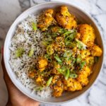 To take your Vegan Bang Bang Cauliflower Recipe to the next level, sprinkle chopped green onions or fresh cilantro on top. They add a fresh pop of color and a bright herbal accent that contrasts beautifully with the creamy sauce.