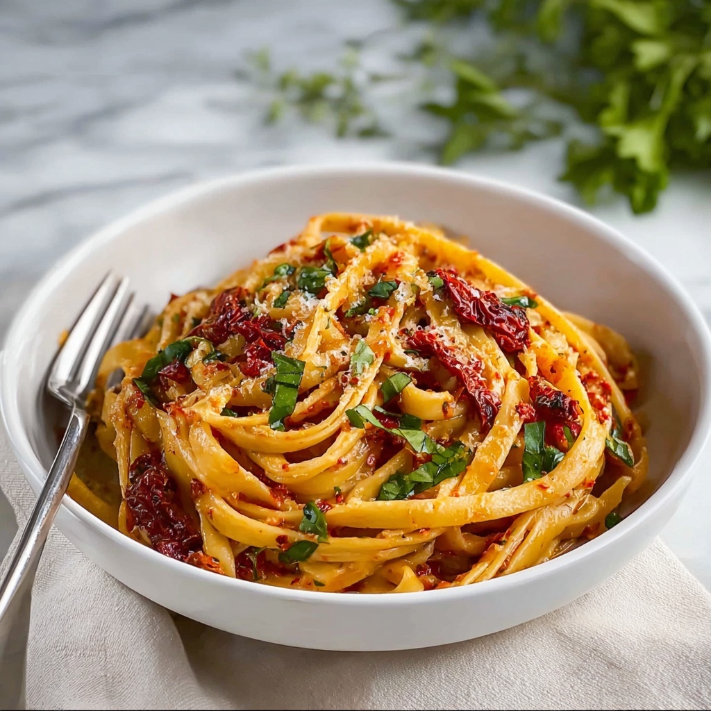 This Vegan Creamy Sun-Dried Tomato Pasta is a quick and flavorful dish combining tender pasta with a rich, dairy-free sauce made from coconut milk, sun-dried tomatoes, and nutritional yeast. Perfect for a satisfying vegan weeknight dinner, it’s creamy, savory, and garnished with fresh basil for a burst of freshness.