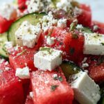 This refreshing Watermelon Feta Salad is a perfect blend of sweet, salty, and tangy flavors featuring juicy watermelon cubes, crumbly feta cheese, and fragrant fresh mint. Lightly dressed with olive oil and lime juice, it serves as an ideal summer side dish or appetizer that comes together in just 10 minutes.
